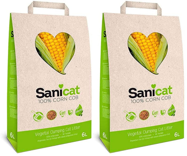 Sanicat 100% Corn Cob Vegetal Clumping Litter 6 Litre