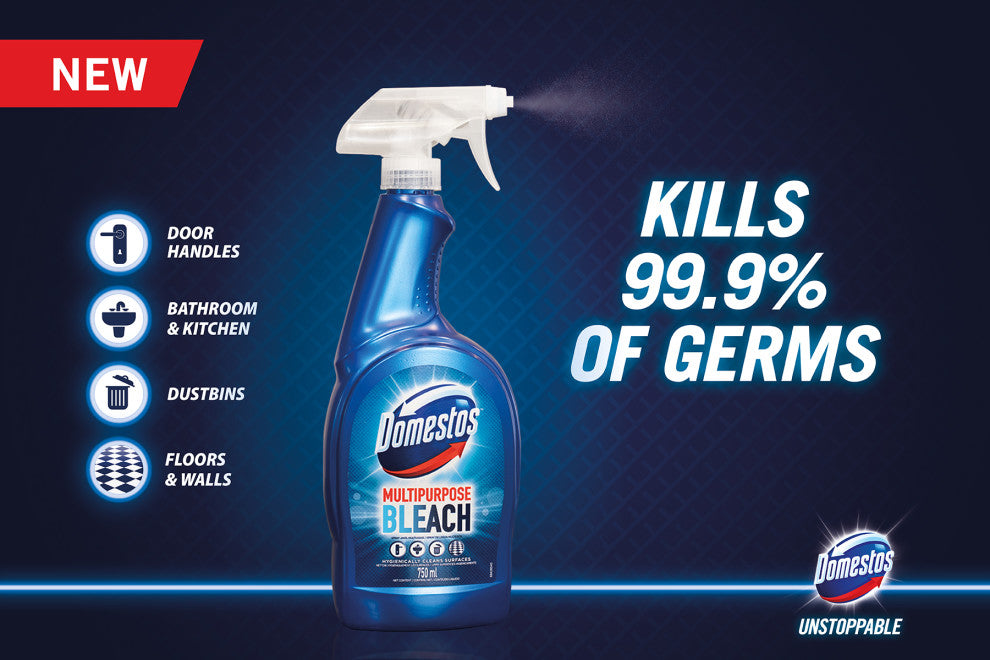 Give your home a mean clean whenever it needs it. A few well-aimed squirts of Domestos Bleach Spray leave surfaces brilliantly clean.