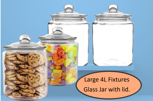 Large 4L Fixtures Glass Jar with Air Tight lid for Biscuits,Sweets,Coffee, etc..