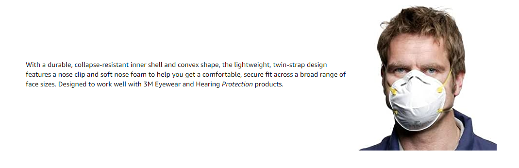 Provides respiratory protection against low levels of fine dusts and mists.