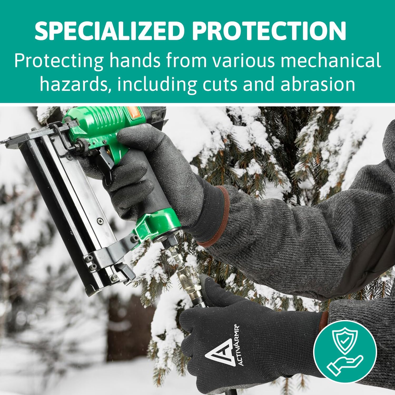 Ansell ActivArmr Winter Work Gloves, Thermal Resistance and Grip in Low Temperature and Outdoors, Cold Protection Gloves, Men's Women's Gloves, Black Gloves {All Sizes}