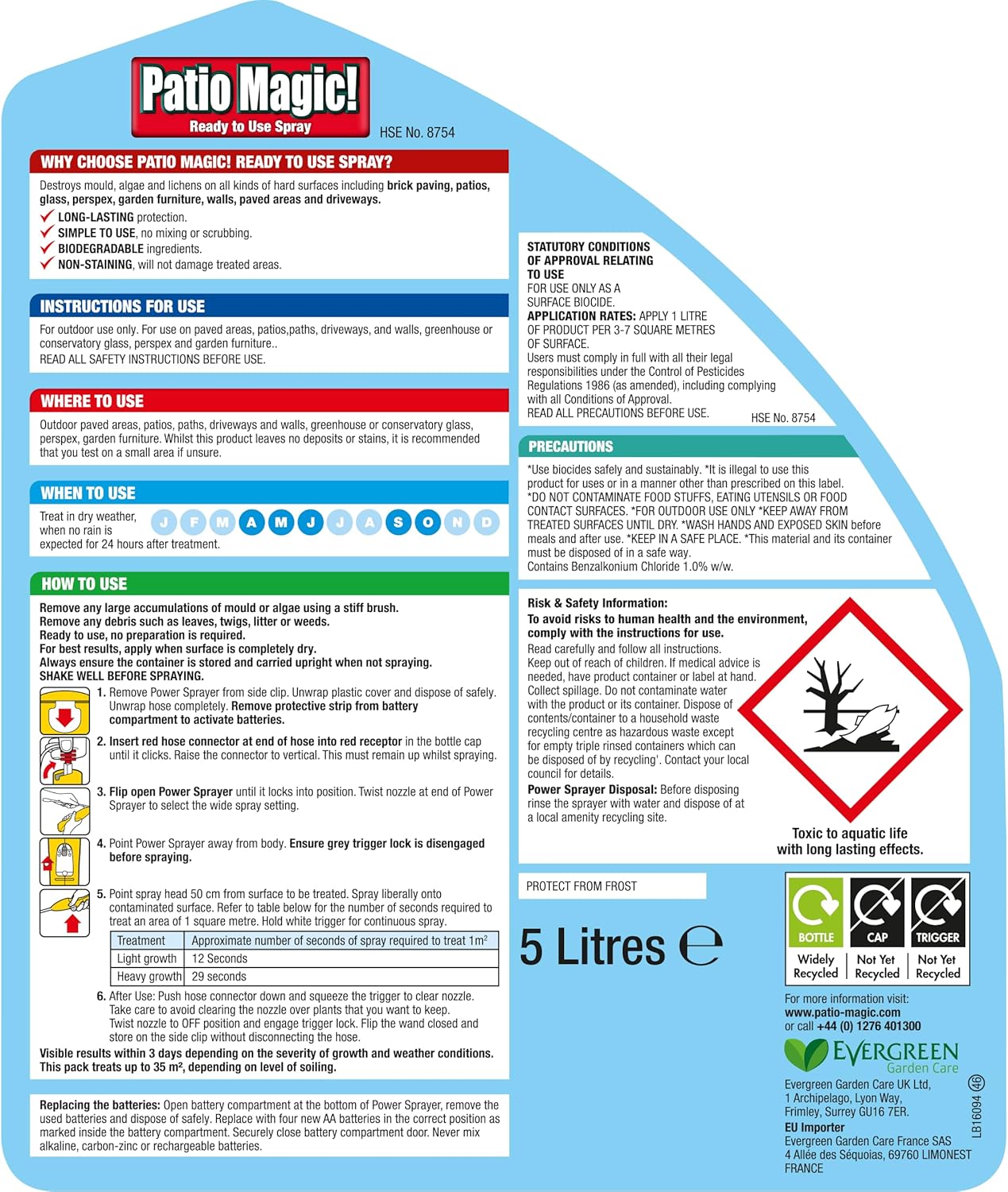 Patio Magic! Ready to Use Spray destroys mould, algae and lichens on all kinds of hard surfaces including brick paving, patios, glass, Perspex, garden furniture, walls, paved areas and driveways.