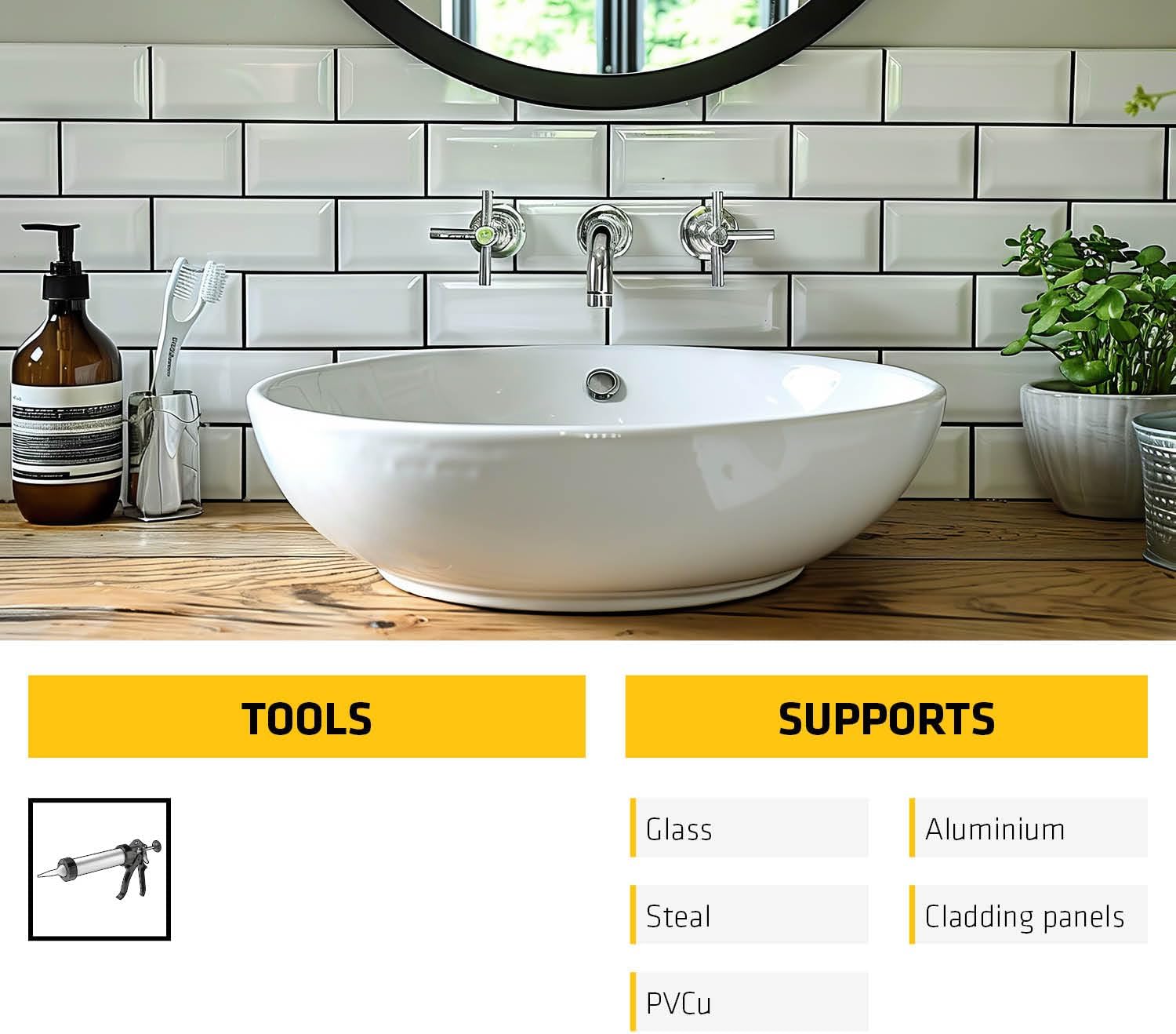 A mid modulus silicone sealant that adheres to most smooth and non-porous materials. Contains an anti-fungal compound to prevent mould growth in areas of high humidity. Forms a permanently flexible rubber seal.