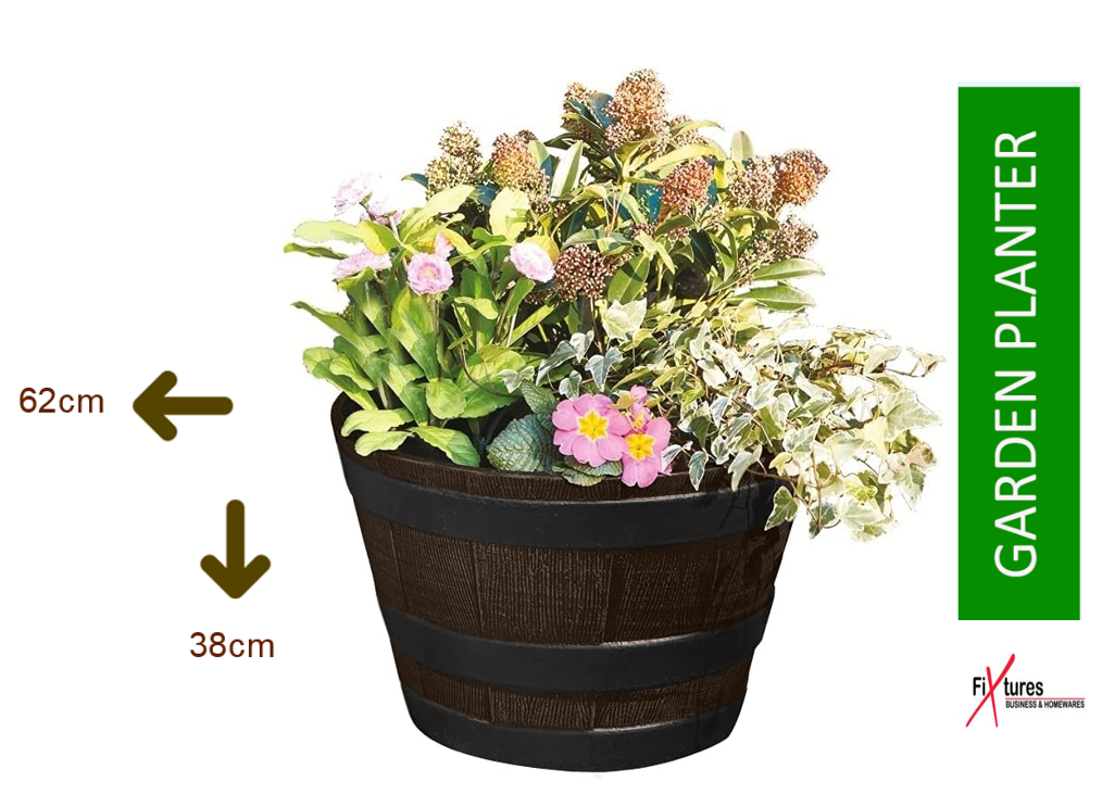 - Bring a touch of country farmhouse chic your surroundings with our Fixtures Half Barrel collection, authentic hardwearing plastic planters styled on a traditional old rustic wooden barrel.