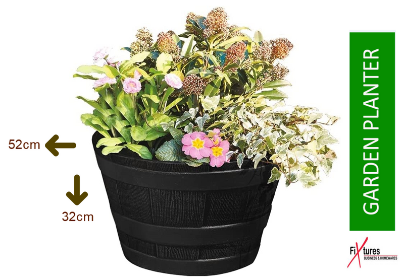 - Bring a touch of country farmhouse chic your surroundings with our Fixtures Half Barrel collection, authentic hardwearing plastic planters styled on a traditional old rustic wooden barrel.