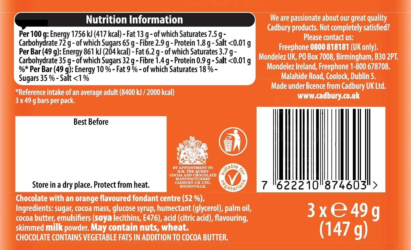 Fry's Chocolate Orange Cream | Dark Chocolate Bars with Orange Cream Fondant | 3 x 49g | 16 x 157g F