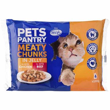 HiLife Wet Cat Food Pets Pantry Meaty Chunks in Jelly 4 x 100g