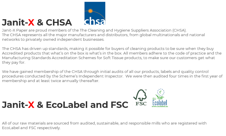 Janit-X Paper manufacturers are proud members of the The Cleaning and Hygiene Suppliers Association (CHSA)..