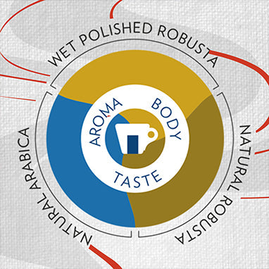 Combining the finest Arabica coffee from South America, blended with African and Indian robustas. Offering a full-bodied, vigorous flavour.