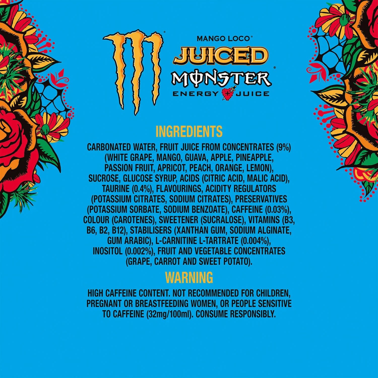Mango Loco is a heavenly blend of exotic juices certain to attract even the most stubborn spirit. Crazy good taste with just enough of that Monster magic to keep the party going for days...