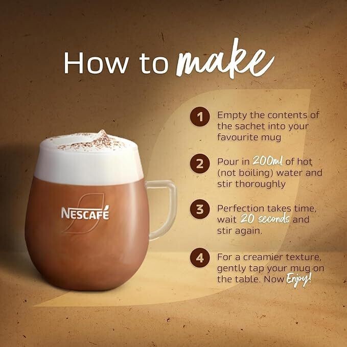 Whether you're having a busy morning or just want to relax with a warm drink, Nescafé Latte Instant Coffee Sachets will add a unique touch to your day.