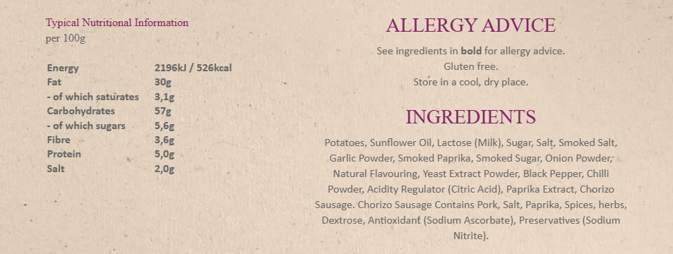 Deliciously meaty flavoured crisps made with Yorkshire chorizo.