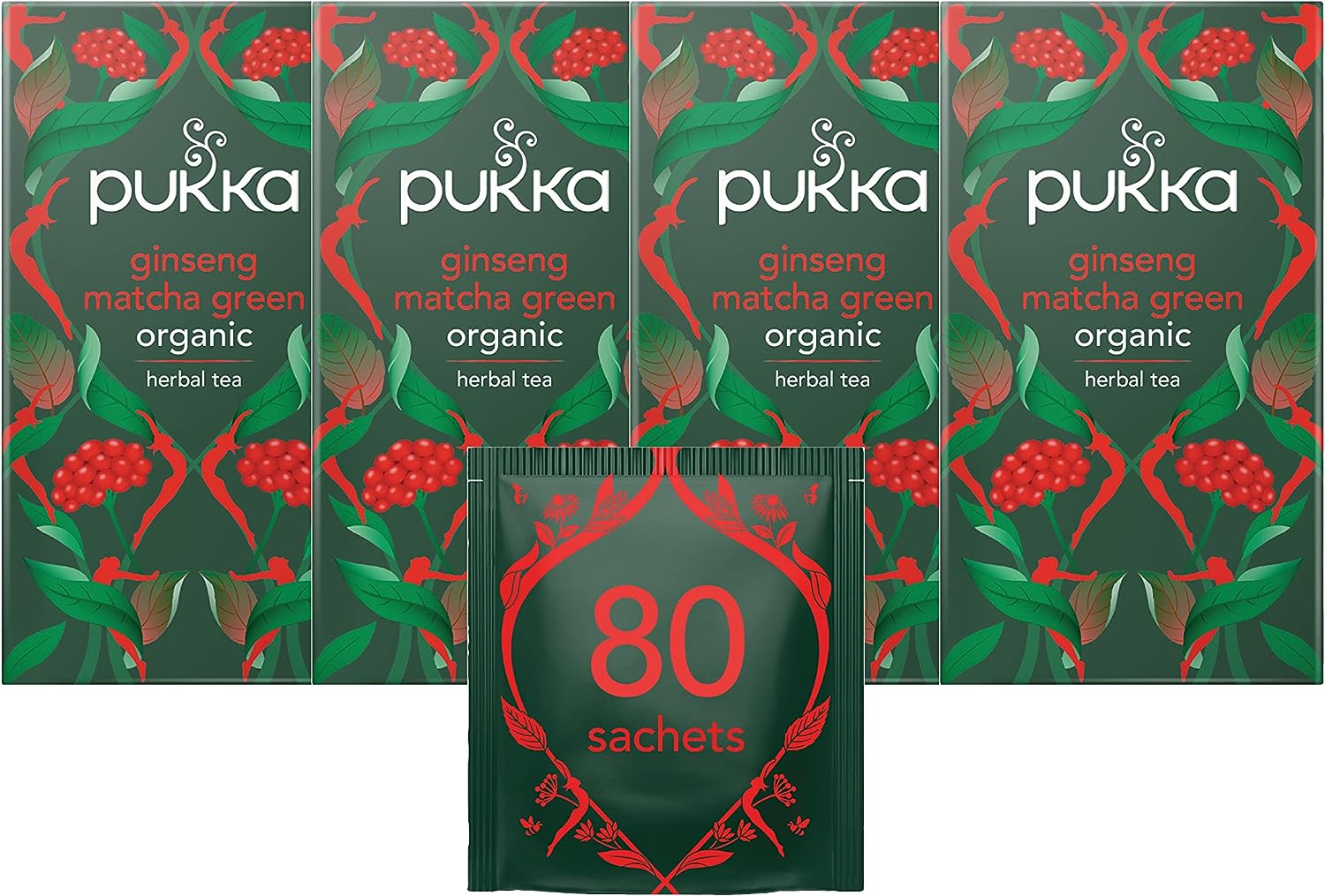 Pukka Herbs, Ginseng Matcha Green Organic Herbal Tea, Ginseng, Lemongrass, Ginger, Matcha and Green Tea, Perfect For Everyday Green Vitality, 20 Sachets