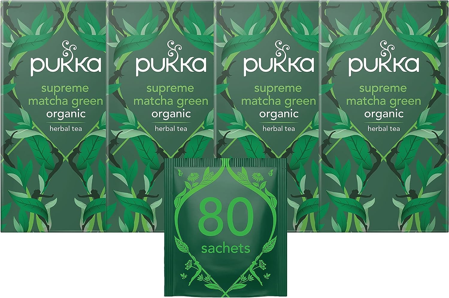 Pukka Herbs | Supreme Matcha Green Organic Herbal Tea | Green Tea and Matcha Powder | Perfect For Everyday Vitality | 20 Per Packs | 20-240 Sachets