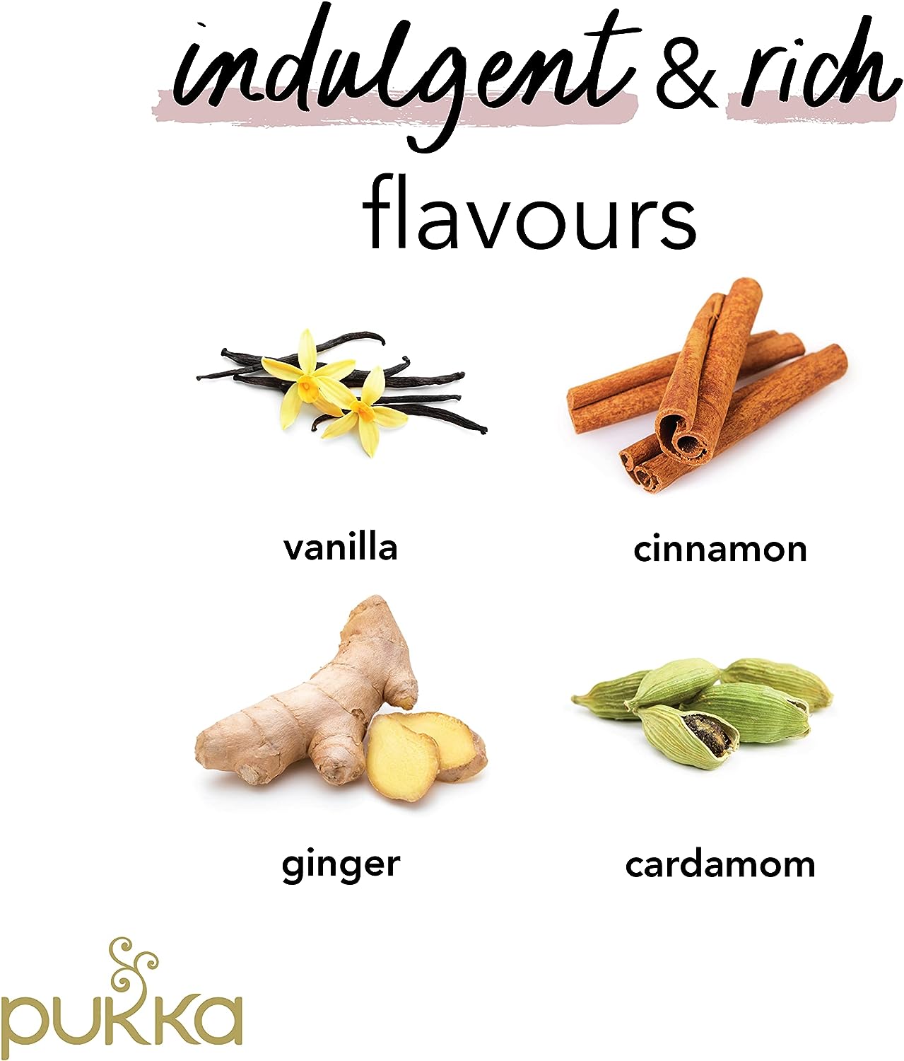 Pukka Herbs | Vanilla Chai Organic Herbal Tea | Vanilla, Cinnamon, Cardamom, Ginger and Fennel | Perfect For Energising | 20 Per Pack | 20-160 Sachets