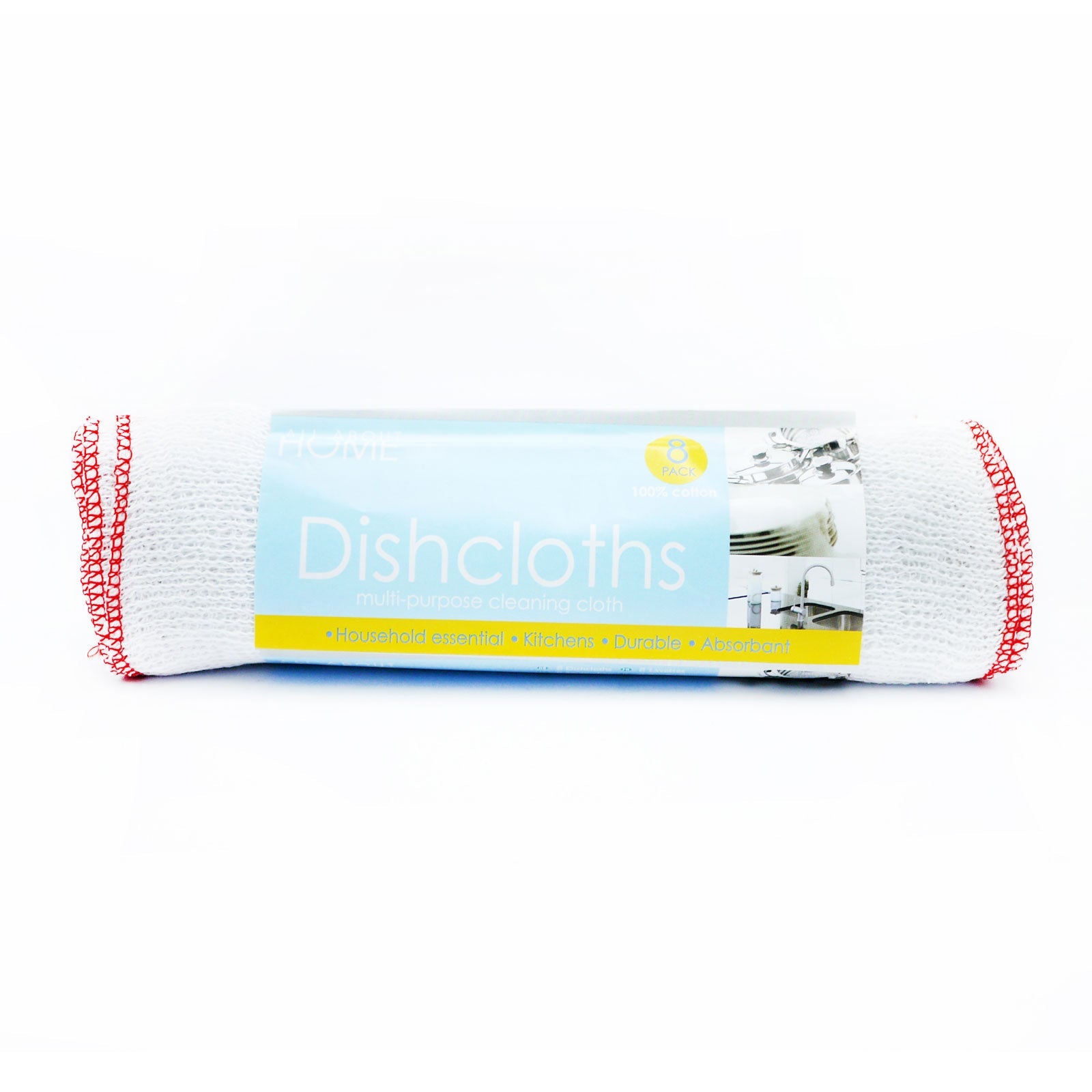 Supplied in an attractive roll pack are 8 durable and absorbent dishcloths that can be bleached or boiled.