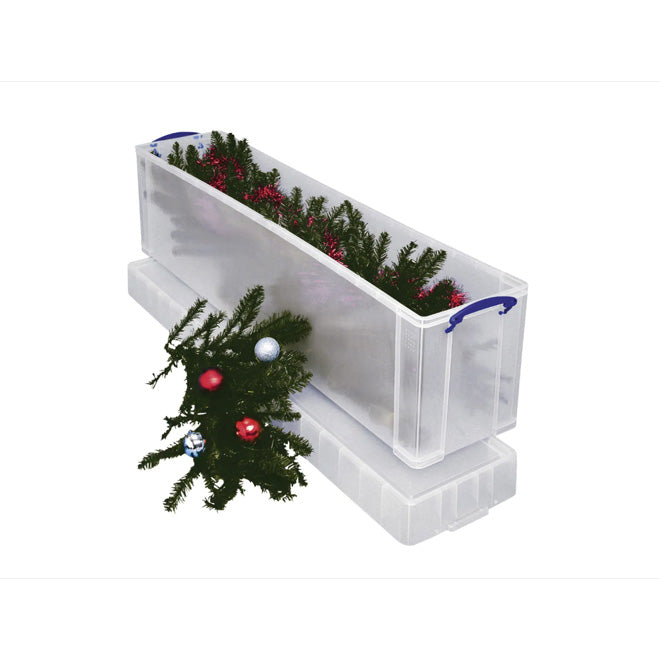 - Designed to hold Christmas trees up to 6/7 foot. Plus you get all the usual benefits of Really Useful Boxes; Stackable, strong and with secure lids. Stackable Clip-on lids Lids open at either end