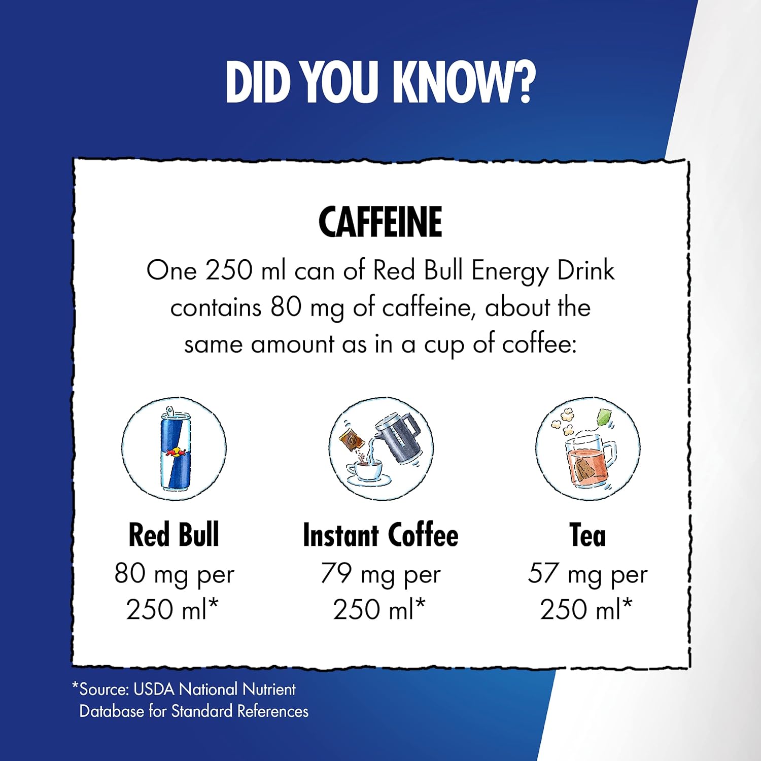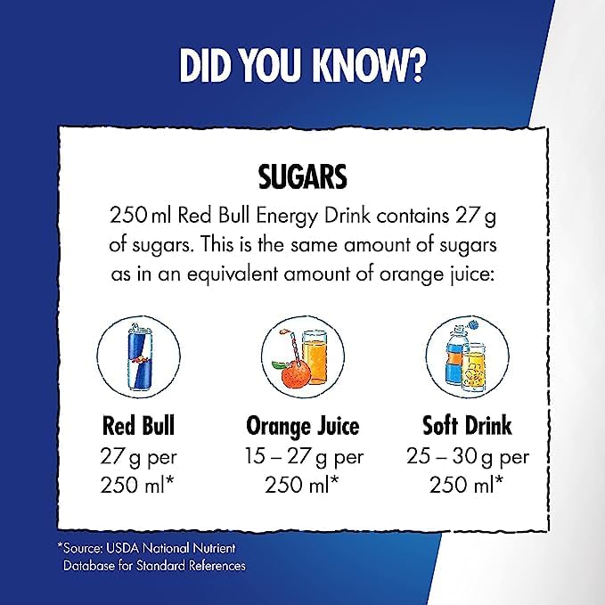 RedBull original carbonated taurine energy drink with caffeine. Provides immediate energy and vitamins