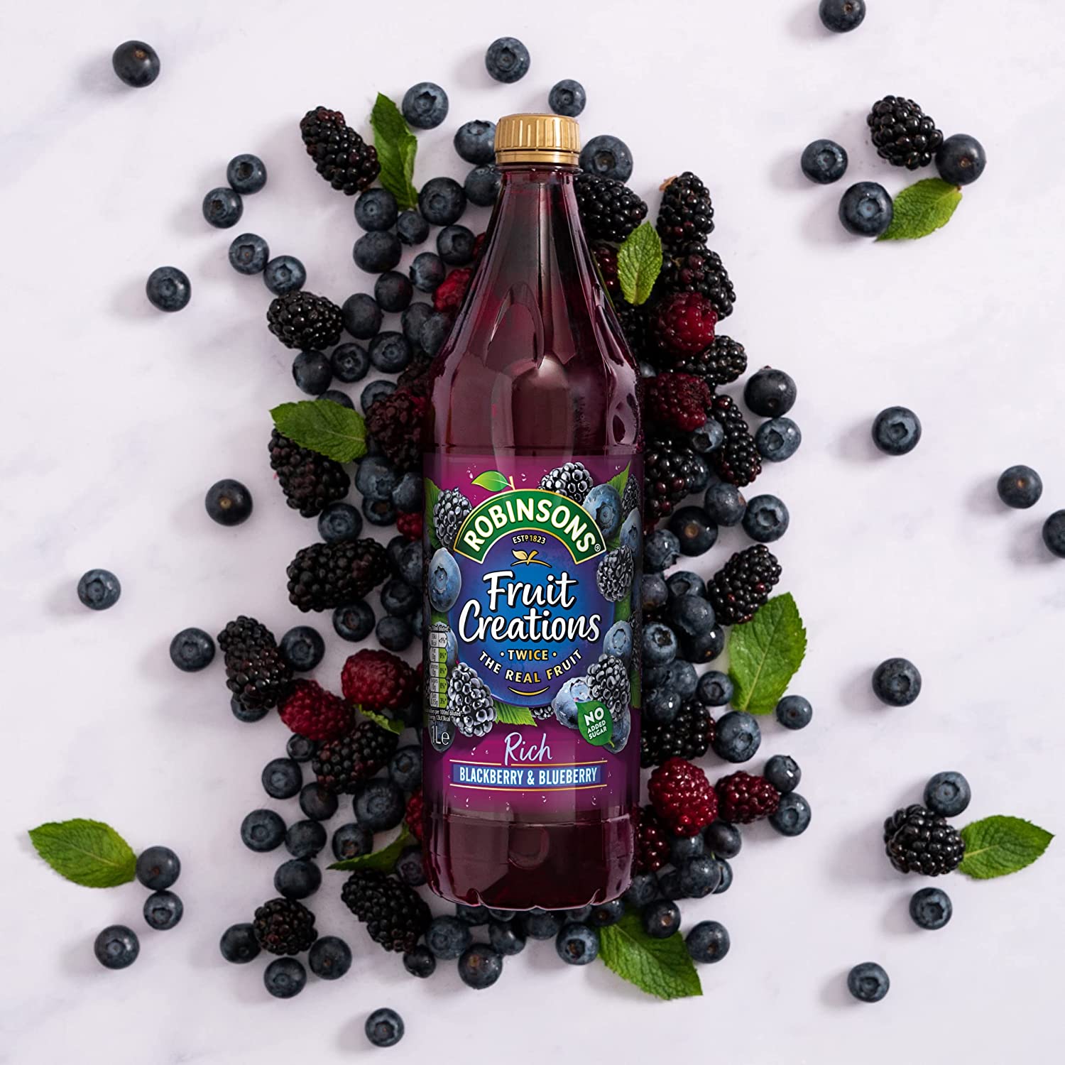 Robinsons Fruit Creations Blackberry & Blueberry Squash No Added Sugar ,1 Litre