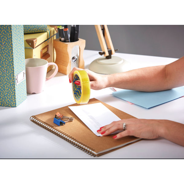 Ideal for everyday use, this classic adhesive tape provides excellent adhesion and outstanding control. An easy tear roll lets you cleanly break off a piece of tape, without the hassle of scrunched ends and loose pieces. This non-static roll gives exceptional control and allows you to bond paper, card and other materials quickly and efficiently for ultimate productivity. Clear when applied, it ensures a neat and tidy finish to any bonding job.