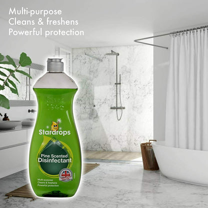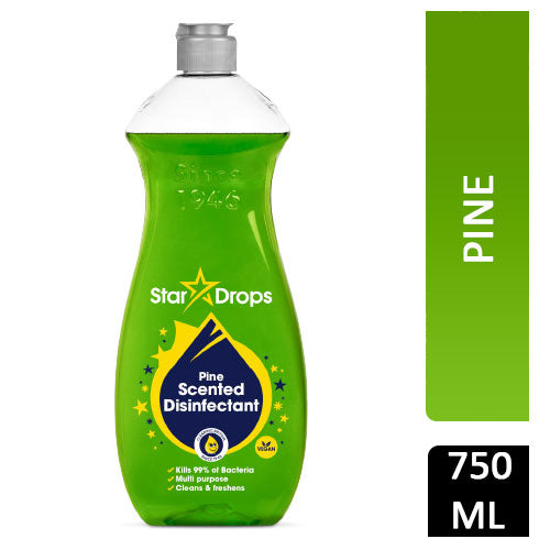 Stardrops Pine Scented Disinfectant 750ml is ideal for cleaning and protecting your home from germs and odours. Its unique formula is perfect for cleaning sinks, tiles, floors, toilets, work surfaces, bathrooms, drains and surrounding areas. Use the product neat for cleaning toilets, sinks and drains or dilute 30ml to 2 litres of water for general household disinfection. Warning: Keep out of reach of children and always read instructions before use.