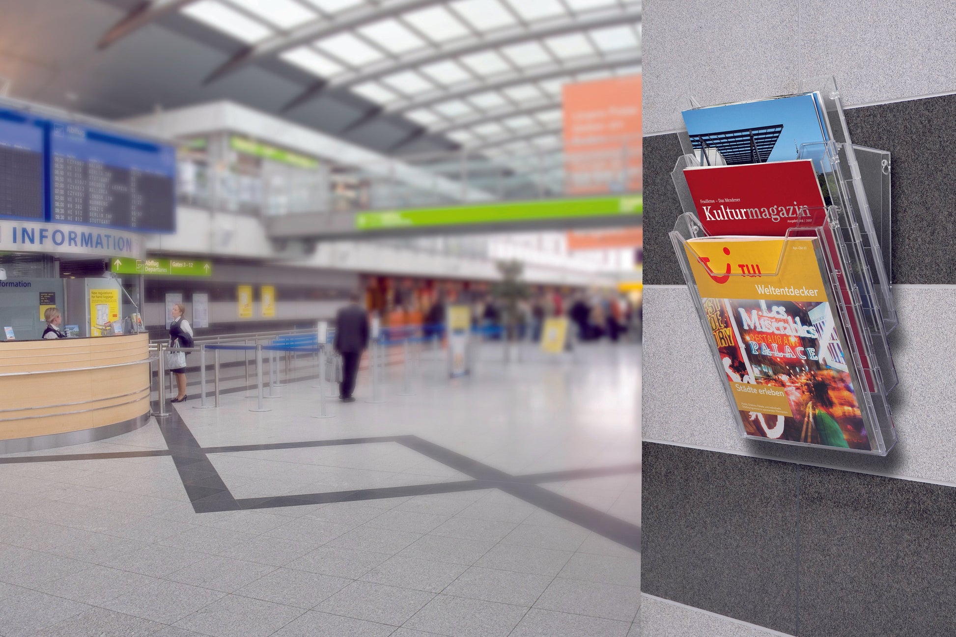 Set of 3 literature holder for displaying and presenting information in A4 format. Includes one tray, two brackets and one front plate. Made from strong and robust plastic. Can either be free standing on a desktop or mounted to a wall. All trays are quick and easy to assemble and clean when required. Dimensions for stand: 291 x 242 x 217mm (H x W x D) / Dimensions for wall: 445 x 242 x 152mm (H x W x D).