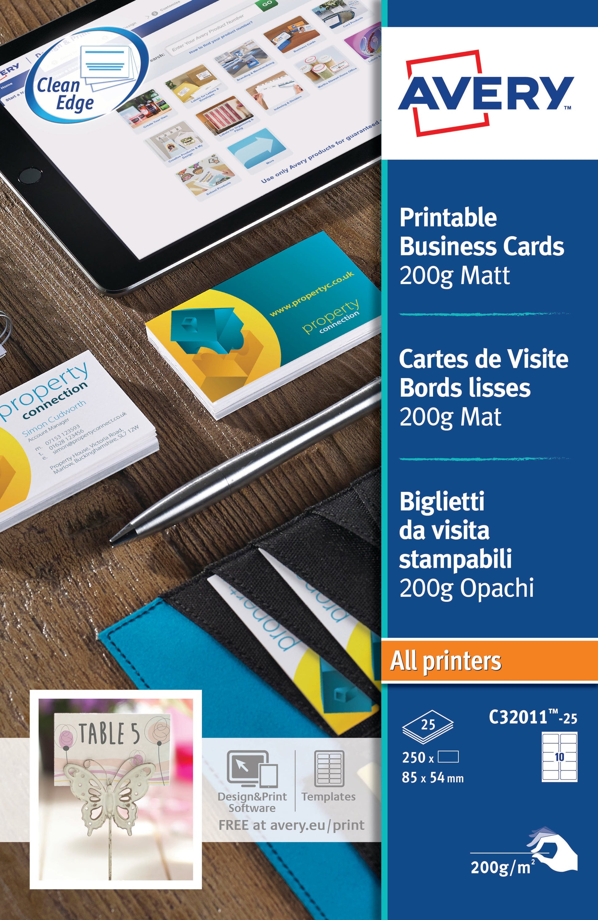 Avery Business Card Single Sided 10 Per Sheet 200gsm Matt (Pack 250) C32011-25