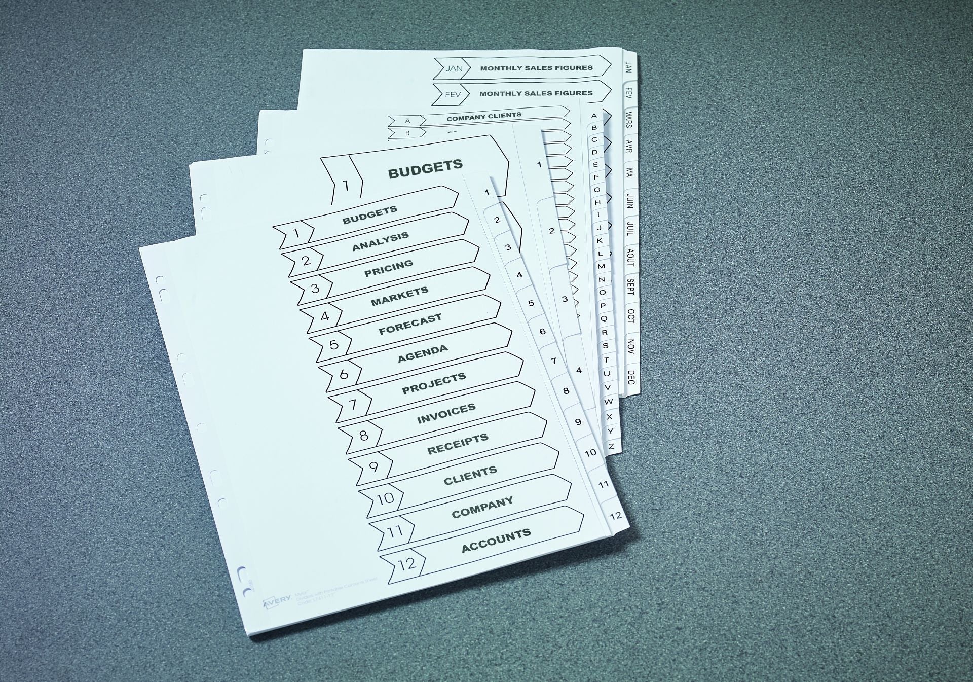 Organising and referencing documents is easy with the Mylar dividers from Avery. Flicking through sections becomes easy and data retrieval is streamlined for increased efficiency. The index includes a contents page that is compatible with popular office software and allows you to customise section headings or add corporate logos.