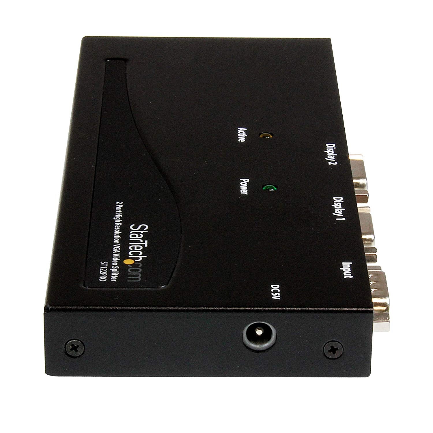 The ST122PROGB 2 Port High Resolution VGA Video Splitter - 350 MHz splits a VGA video source signal to 2 monitors or projectors simultaneously - a professional grade solution that is perfect for presentations, classrooms, tradeshows, or in-store displays, where the highest quality video on several monitors is needed.