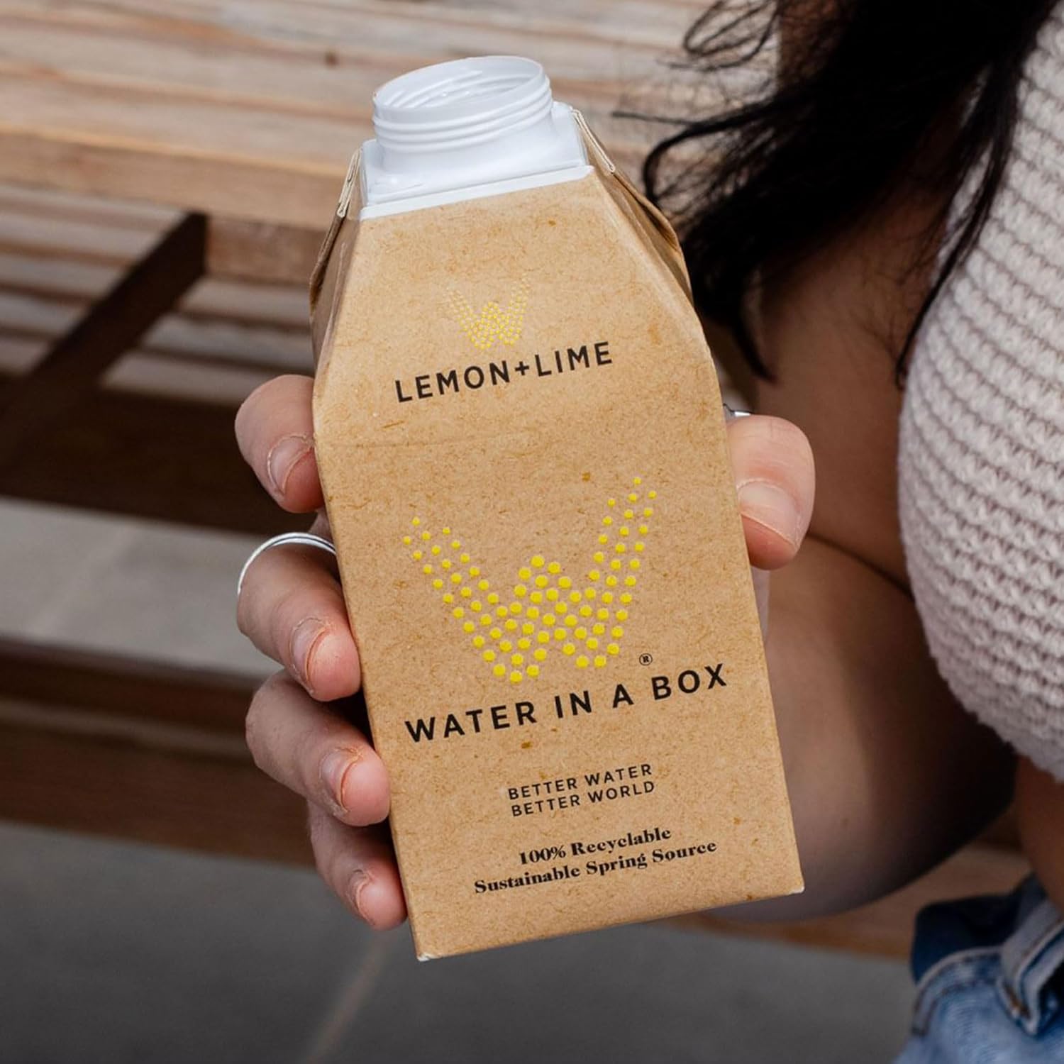 Water in a Box Flavoured Pure Spring Water 12 x 500ml Cartons | 100% Recyclable Packaging | Sustainably Sourced - Better Water for a Better World (Lemon & Lime)